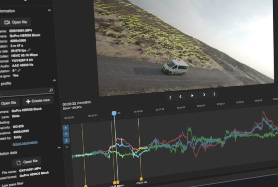 Punti di Forza: Stabilizzazione basata su dati reali (non solo analisi visiva), correzione perfetta dell'orizzonte, eliminazione dell'effetto "nausea" tipico delle riprese action grezze, resa video simile a una "Steadicam volante".