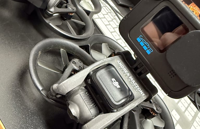Il Volo Immersivo (FPV) & Cinewhoop È lo strumento che rompe la barriera tra osservatore e scena. Un drone FPV (First Person View) compatto e "carrozzato", progettato per volare dove gli altri non possono: dentro gli edifici, attraverso finestre o a pochi centimetri dall'azione. Dispongo di due unità identiche per garantire continuità operativa anche in set ad alto ritmo.