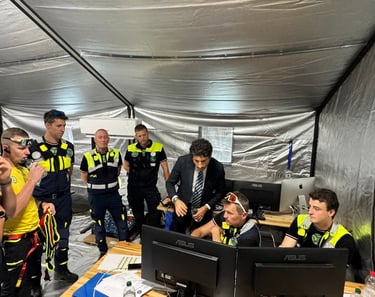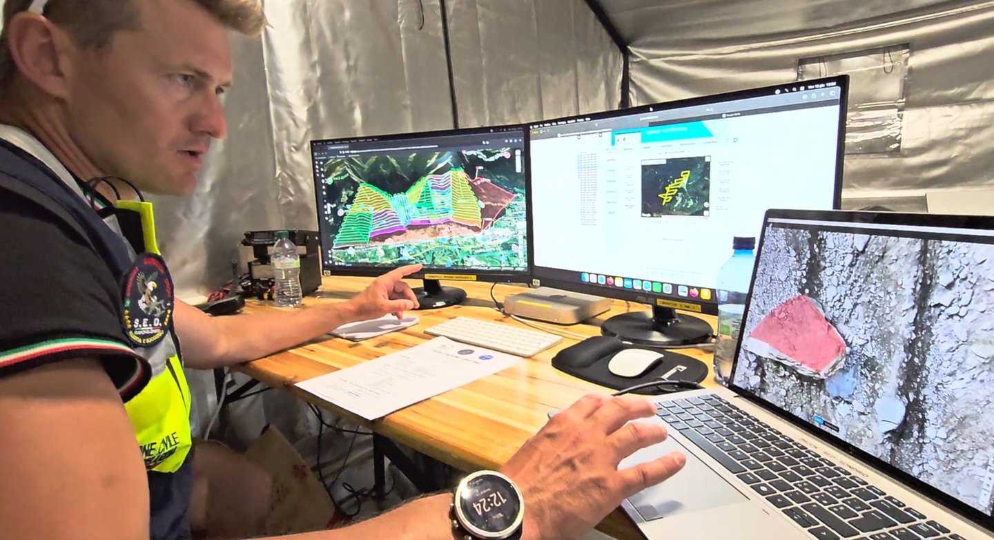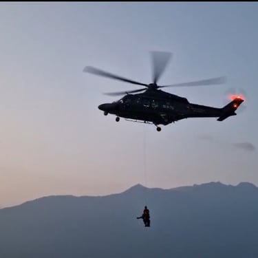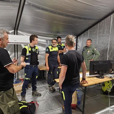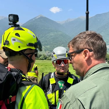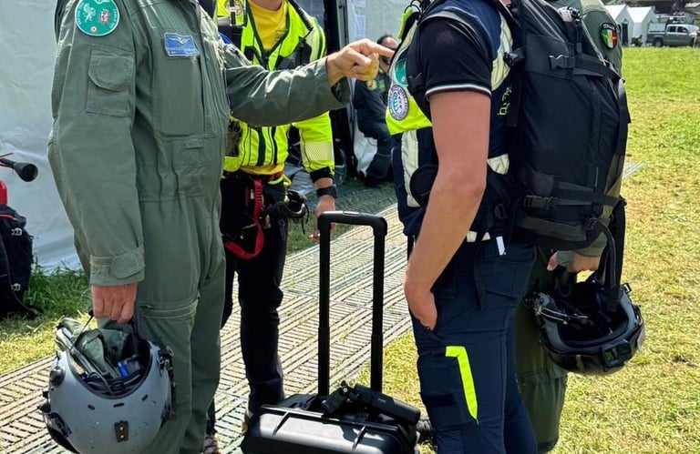 Unico pilota di droni elitrasportato: Durante le operazioni, ho vissuto un'esperienza operativa unica: sono stato l'unico pilota di droni civile ad essere trasportato con elicottero TH-500B e recuperato tramite verricello da Leone HH-139 dell'Aeronautica Militare. Questo momento rappresenta il massimo livello di integrazione tra un operatore tecnico e le forze d'élite del soccorso: essere "verricellati" non è solo un trasporto, è entrare a far parte dell'azione operativa nel cuore dell'emergenza in ambiente impervio.