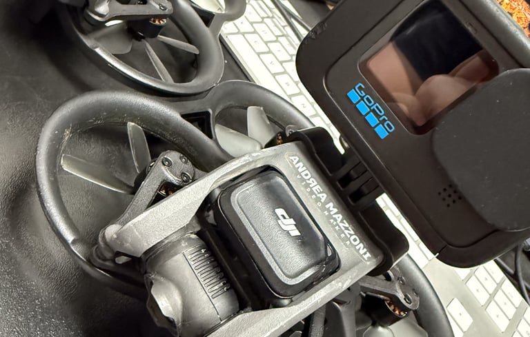 Il Volo Immersivo (FPV) & Cinewhoop È lo strumento che rompe la barriera tra osservatore e scena. Un drone FPV (First Person View) compatto e "carrozzato", progettato per volare dove gli altri non possono: dentro gli edifici, attraverso finestre o a pochi centimetri dall'azione. Dispongo di due unità identiche per garantire continuità operativa anche in set ad alto ritmo.